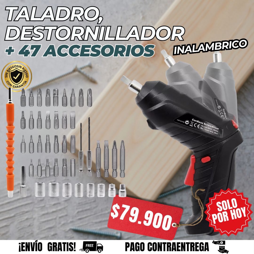 TALADRO DESTORNILLADOR + KIT 47 ACCESORIOS🎁